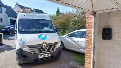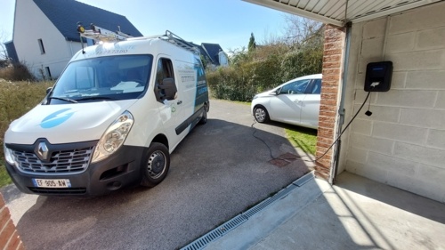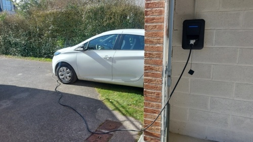 Installation d'une borne de charge pour la recharge de la Zoé et de la Tesla du couple de clients. Raccordement au compteur Linky pour une gestion de charge automome. Etude et devis gratuits.