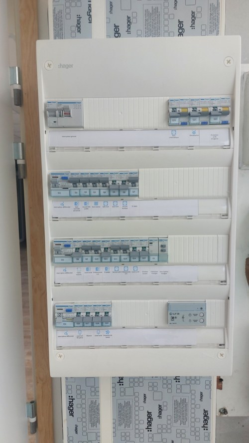 Mise en place du tableau electrique aux normes et de l'appareillage mural HAGER (prises de courant , prises RJ45....)
