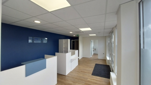 Refection electrique complete d'un laboratoire d'analyses. Remplacement du reseau electrique et informatique. Installation des dalles et downlights LED et des blocs de securité...